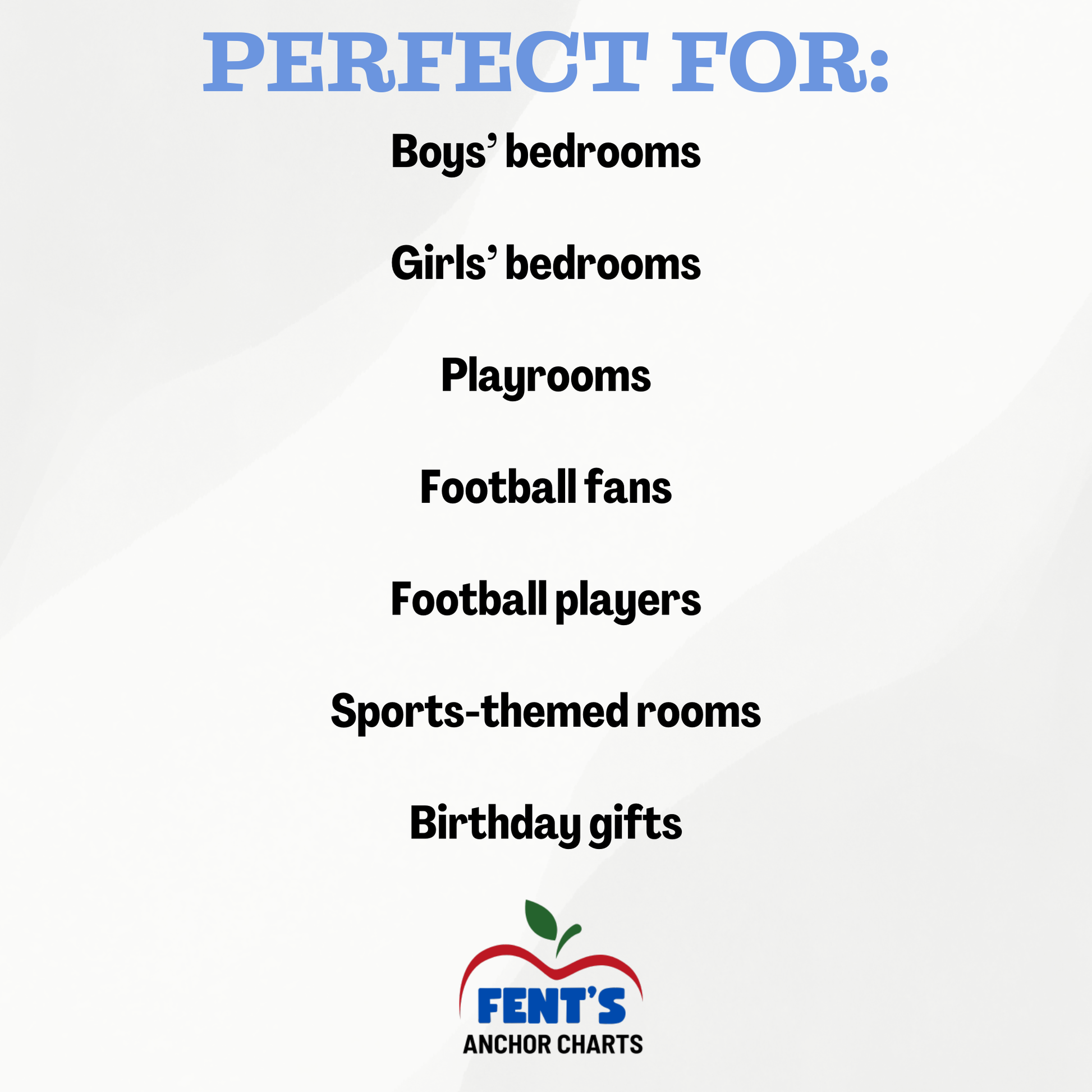 Bring football energy to any space with this bold "Eat Sleep Football Repeat" laminated poster. Designed for sports lovers, young athletes, and football fans of all ages, this print adds the perfect touch to bedrooms, game rooms, classrooms, lockers, or sports-themed spaces.