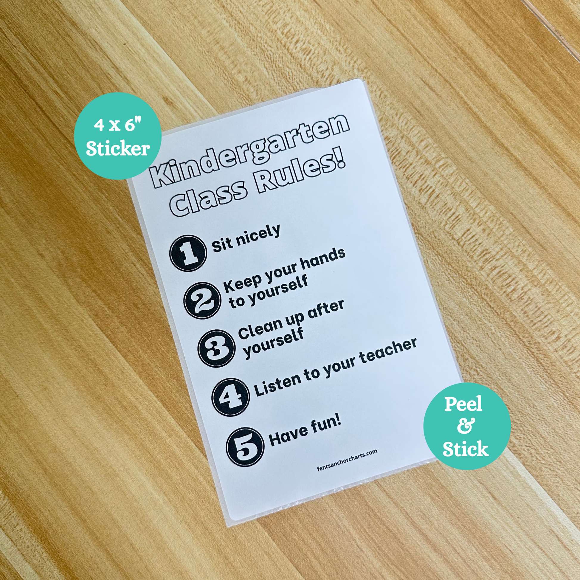"Kindergarten Classroom Rules" Anchor Chart Sticker