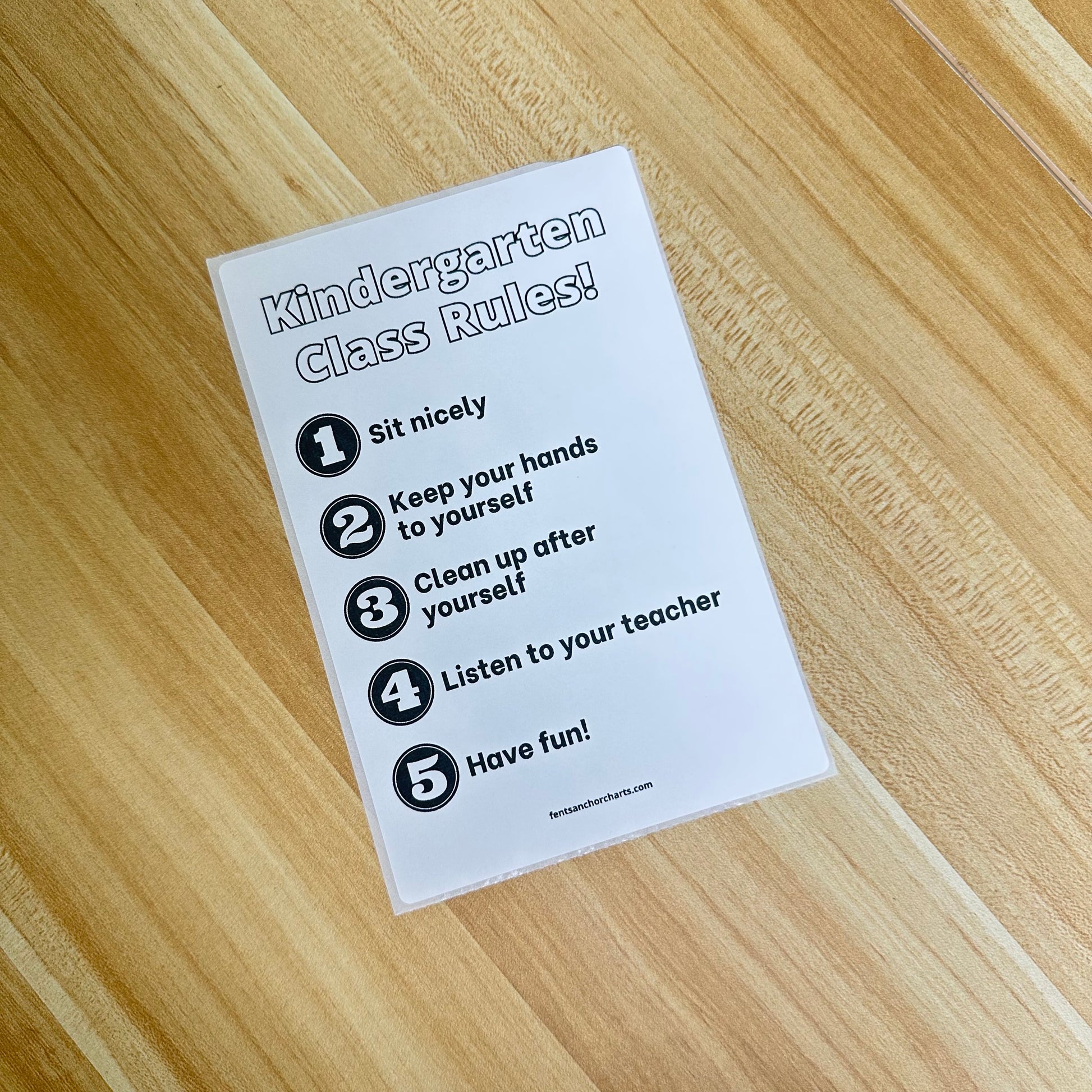 Kindergarten teachers will love this thermal printed 'Class Rules' anchor chart sticker! Designed specifically for kindergarten classrooms, this engaging classroom expectations poster is the perfect visual aid to help set clear, positive behavior guidelines in your kindergarten classroom. Durable and easy to display, this chart supports classroom management while adding a cheerful touch to your wall decor. A must-have for any Kindergarten teacher!