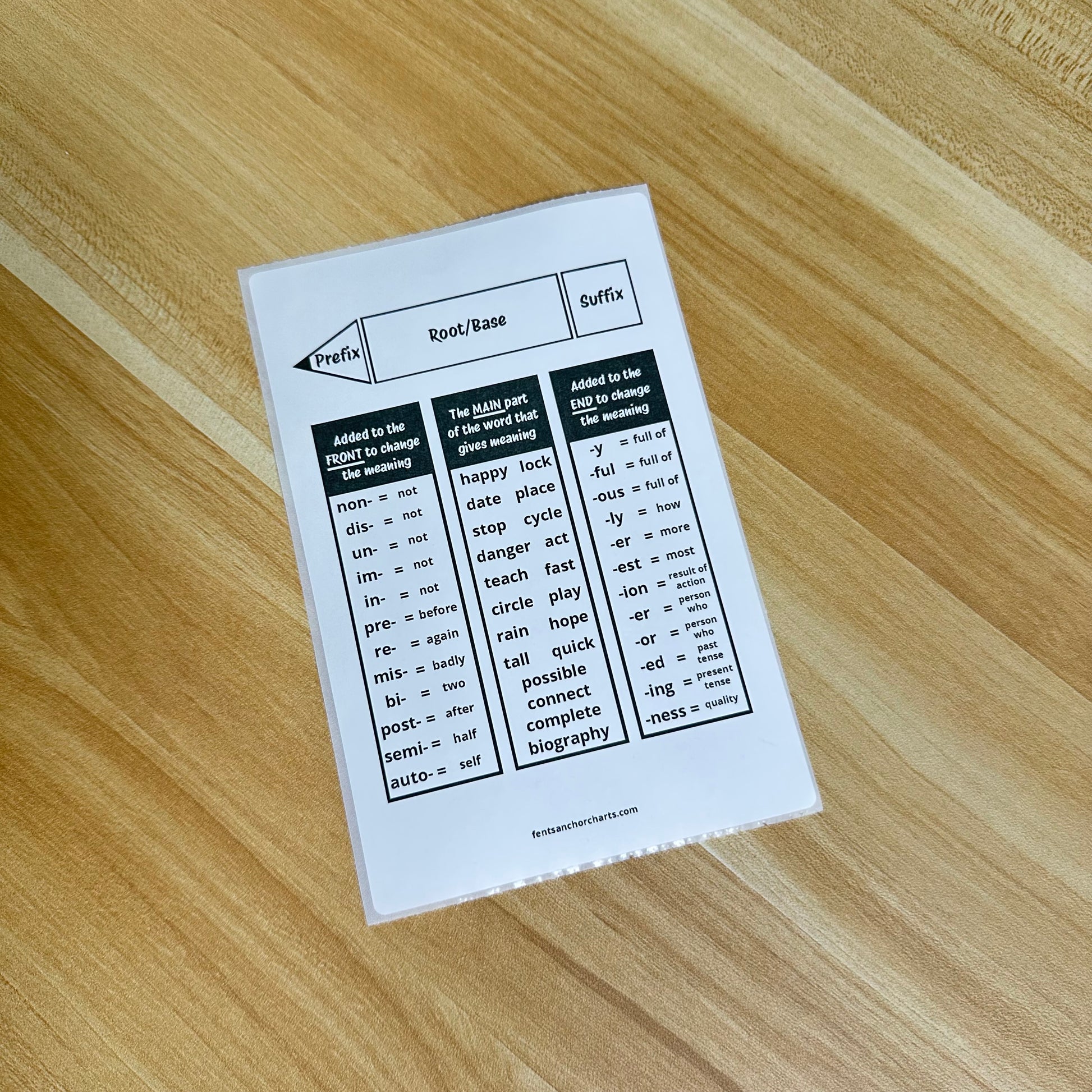 "Prefixes, Suffixes, Root Words" Anchor Chart Sticker
