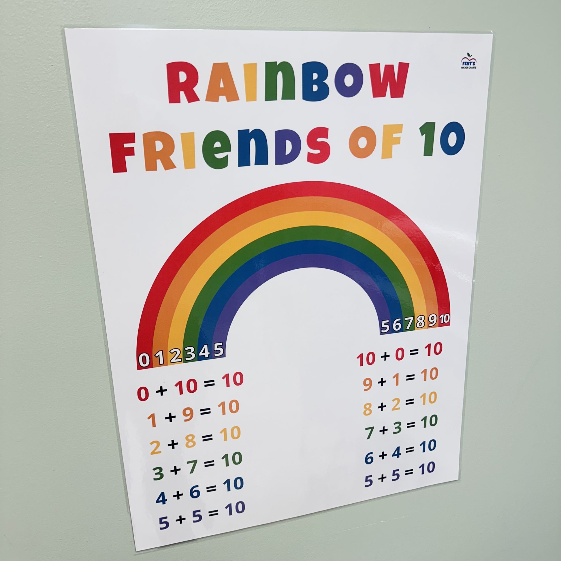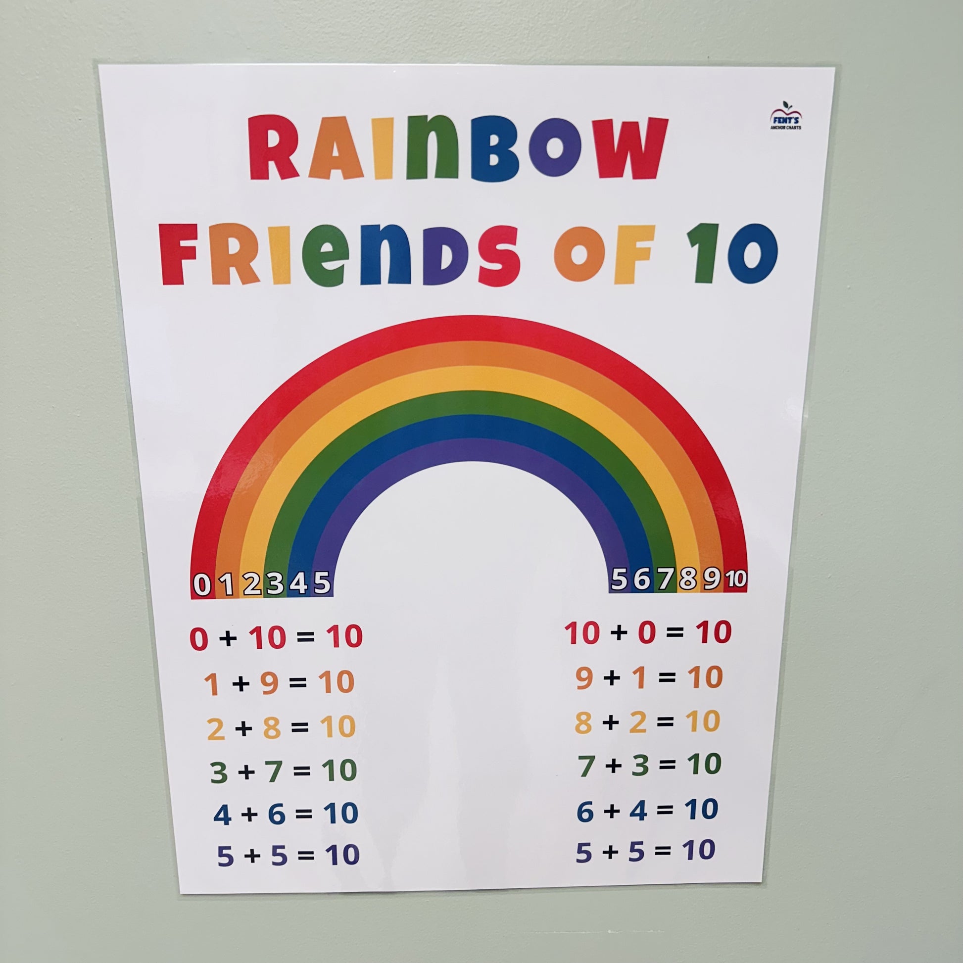 Brighten up your classroom and boost early math skills with this 'Rainbow Friends of 10' laminated anchor chart! Perfect for Pre-K, Kindergarten, and 1st grade, this laminated math poster is a must-have visual aid for teaching number bonds and combinations that make 10. Designed with rainbow colors and large, easy-to-read numbers, this chart helps students grasp the concept of addition in a fun and engaging way.
