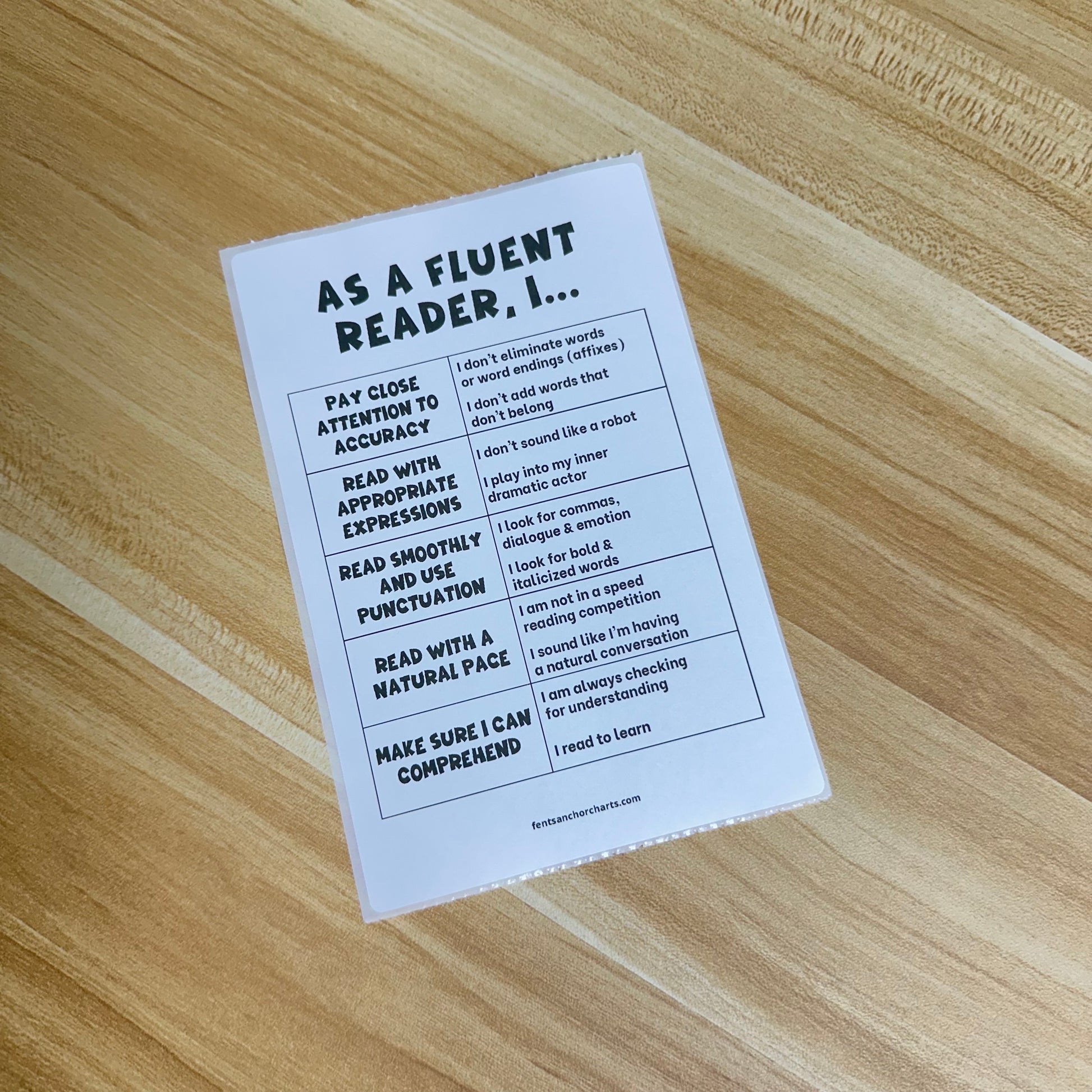 Support your students in becoming confident and expressive readers with this 'Fluent Reader' thermal printed anchor chart sticker! Designed for elementary students, this reading fluency poster breaks down key strategies fluent readers use: accuracy, expression, pacing, punctuation awareness, and comprehension.